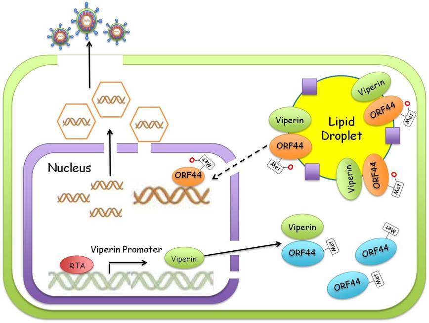 该研究以KSHV为研究模型,发现宿主氧化还原酶Viperin (virus inhibitoryprotein, endoplasmic reticulum associated, interferon inducible)和KSHV解旋酶ORF44具有较强的相互作用;进一步研究发现Viperin作为氧化还原酶可以催化ORF44等解旋酶甲硫氨酸的氧化,并通过质谱分析确定了ORF44蛋白的氧化位点。为探索ORF44氧化位点的功能意义,该研究组利用细菌人工染色体(BAC)技术对这些位点进行突变,并重构了数十种具有ORF44不同突变位点的病毒株,最终证明了由Viperin介导的ORF44甲硫氨酸氧化修饰能促进其蛋白的稳定性以及KSHV基因组的复制。