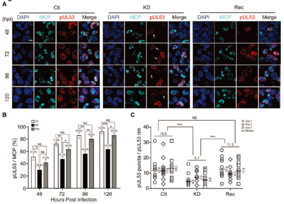 图示:敲降WDR5通过影响出核复合体(NEC)的形成抑制HCMV出核