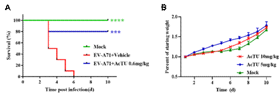 以上结果显示,AcTU有潜力作为一种较为理想的先导化合物,具有体内外高效、低毒性和作用靶点保守、明确的优点,有望用于开发新型广谱抗肠道病毒药物,以对抗由肠道病毒感染引起的疾病流行。