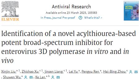 2023年3月23日,病毒学国家重点实验室蓝柯教授、吴叔文副教授和周海兵教授等合作在国际学术期刊Antiviral Research在线发表了题为“Identification of a novel acylthiourea-based potent broad-spectrum inhibitor for enterovirus 3D polymerase in vitro and in vivo”的研究论文。该论文报道了一种具有新型结构骨架的强效广谱肠道病毒抑制剂(AcTU),并且系统地揭示了其作用机制。该化合物可作为较为理想的先导化合物用于后续抗肠道病毒药物的研究。