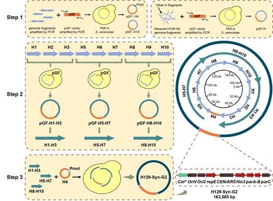 HSV-1 H129株是一株具有独特顺向跨突触传播特性的I型单纯疱疹病毒临床分离株,作为载体在神经环路示踪领域等有着广泛应用。然而传统分子生物学手段难以实现对HSV-1在全基因组水平的编辑,限制了HSV-1病毒的进一步应用。研究团队以神经示踪病毒H129-G4为模板,利用人工合成技术,在酵母中合成了带绿色荧光基因的病毒全基因组,将其转染哺乳动物细胞,成功拯救出了H129-Syn-G2。研究表明,该病毒具有与亲本病毒相似的感染性和形态学特征,且细胞水平复制能力优于模板病毒。该技术的建立为今后开展神经环路示踪病毒改良、溶瘤病毒开发以及抗病毒药物筛选等研究提供了良好的平台。