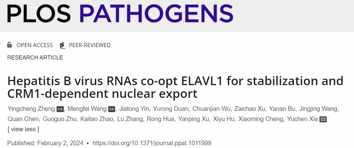 近日,病毒学国家重点实验室/武汉大学泰康医学院(基础医学院)/武汉大学泰康生命医学中心夏宇尘教授课题组在国际学术期刊PLOS Pathogens在线发表题为“Hepatitis B virus RNAs co-opt ELAVL1 for stabilization and CRM1-dependent nuclear export”的研究论文。该研究使用RNA Pulldown-液质联用质谱技术筛选出潜在的乙型肝炎病毒(hepatitis B virus,HBV)RNA出核关键调控因子ELAVL1。通过细胞和动物模型确认该分子在HBV RNA识别、稳定性维持和出核调控过程中发挥核心功能,并对详细分子机制进行了探究。