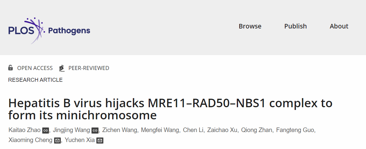 近日,病毒学国家重点实验室/武汉大学泰康医学院(基础医学院)医学病毒学研究所/武汉大学泰康生命医学中心夏宇尘教授研究组在国际学术期刊PLOS Pathogens上在线发表题为Hepatitis B virus hijacks MRE11-RAD50-NBS1 complex to form its minichromosome的研究论文。该研究利用体外合成病毒基因组、蛋白组学筛选、感染模型功能验证及DNA体外修复体系等手段筛选并揭示了MRN复合体(包含MRE11、RAD50和NBS1三种组分)在乙肝病毒微染色体cccDNA形成中的重要作用。
