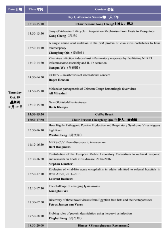 本次研讨会主要议题涉及病毒遗传变异与分子流行病学,病毒与细胞相互作用的分子机理,病毒感染、免疫与致病机理,病毒病防治研究等相关领域,以及新发传染性疾病的研究进展与发展趋势;病毒资源国际标准、世界范围内病毒及相关资源合作与共享、新发病毒性疾病全球应急响应等。