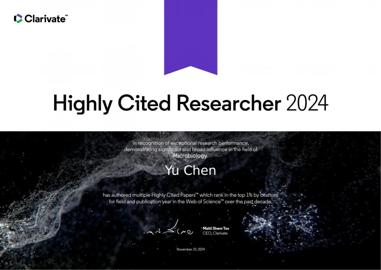 11月19日,科睿唯安发布了2024年度“全球高被引科学家”名单,遴选全球高校、研究机构和商业组织中对所在研究领域具有重大且广泛影响的顶尖科研人才。我室陈宇教授、蓝柯教授、刘映乐教授、徐可教授入选。